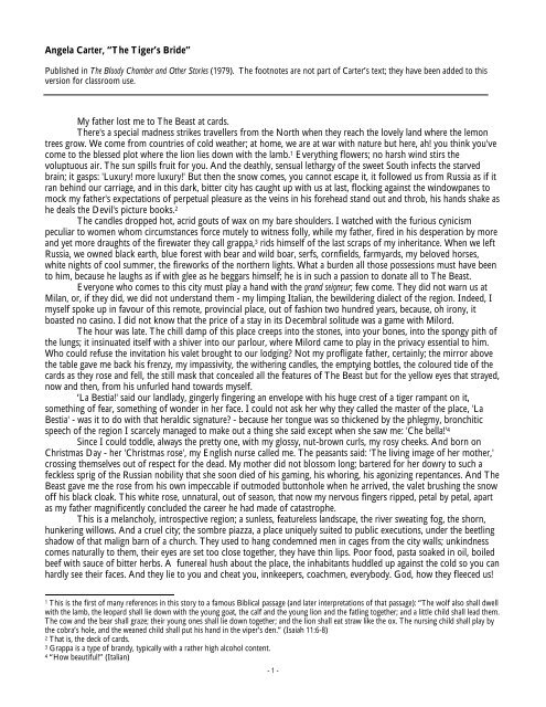 The Tigers Bride Carter Pdf Angela Carter The Tiger S Bride Published In The Bloody Chamber And Other Stories 1979 The Footnotes Are Not Part Course Hero